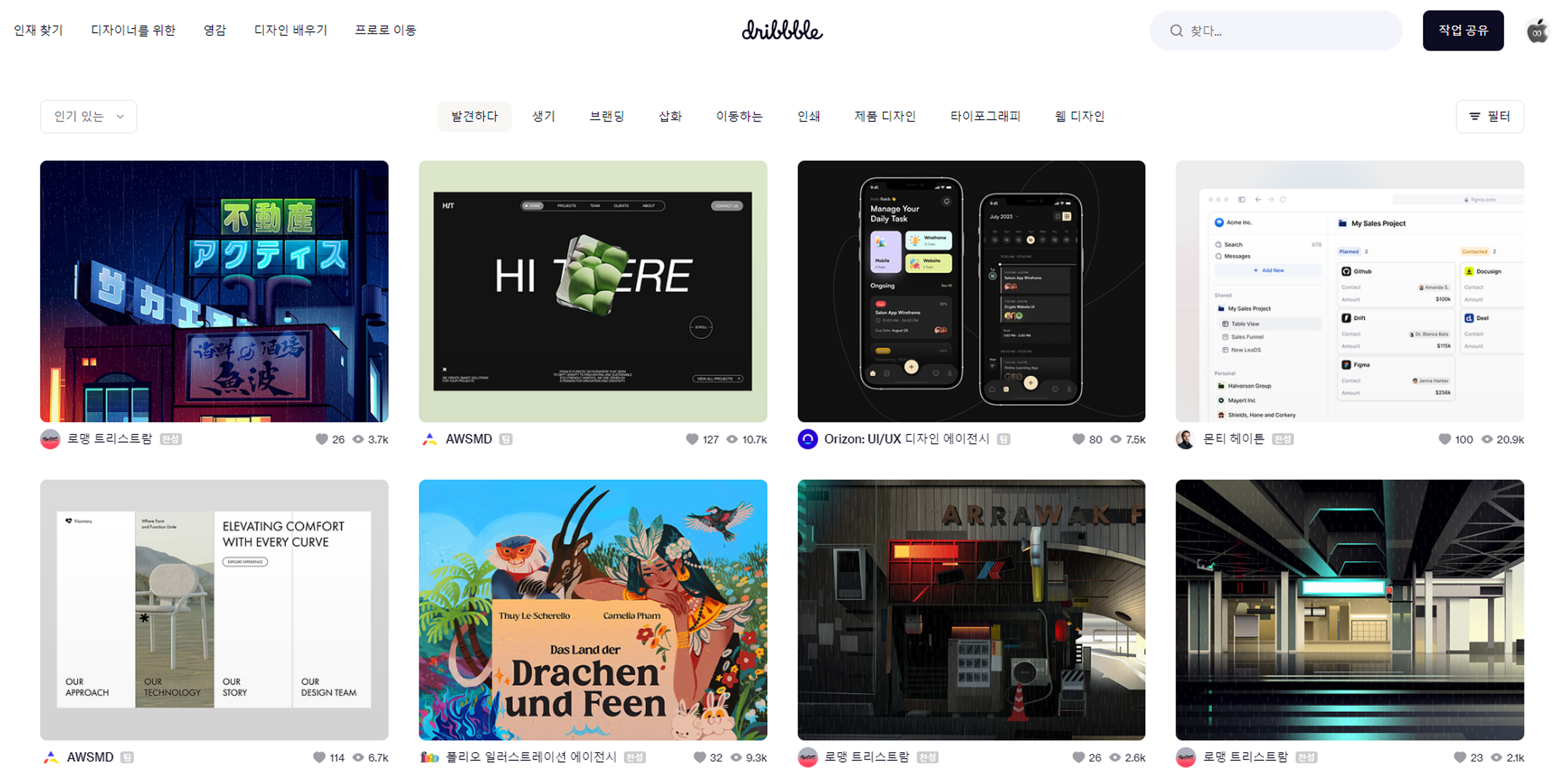 해당 사이트에 업로드 되어 있는 디자인의 완성도는 굉장히 높습니다. 때문에 디자인을 보는 안목을 높이기 위함이라면 해당 사이트를 가장 많이 참고하길 추천드립니다.