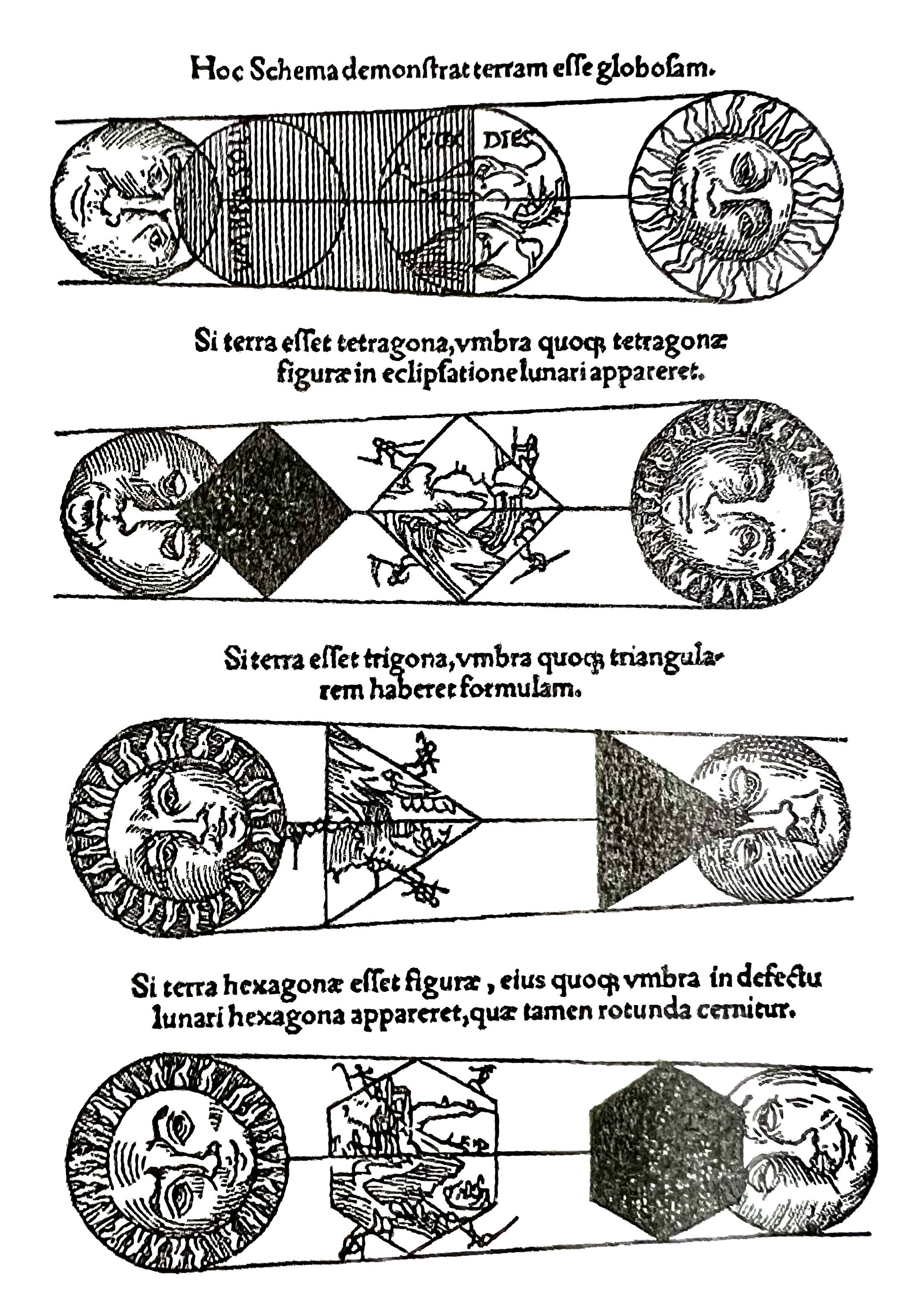 아피아누스는 각 요소를 단순화해 2차원 평면으로 묘사하여 복잡한 정보를 즉각적으로 이해하는 데 도움을 주도록 했다. 지구가 정사각형이면 달에 비치는 그림자도 정사각형으로 나와야 하고, 지구가 삼각형이면 그림자도 삼각형으로, 오각형이면 그림자도 오각형으로 나와야 한다는 그래픽 표현은 지구가 둥글다는 것을 역설적으로 재미ㅣ있게 설명한다. 이것은 과학지식의 시각적 표현이라 할 수 있다.