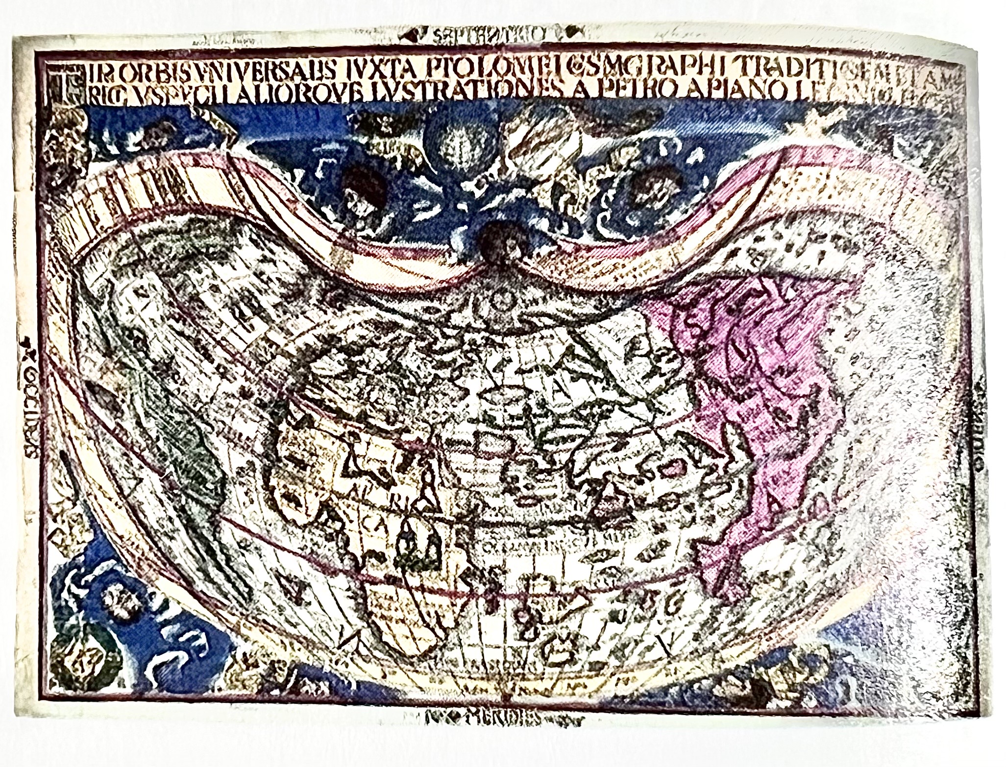 1546년에 아피아누스가 제작한 세계 전도인 코스모그라피아에는 유럽 대륙이 상세하게 묘사되어 있다. 수학자이자 발명가인 아피아누스는 측량, 향ㅎ애와 수학 도구, 지리, 지도, 천문학과 같은 주제의 폭넓은 내용을 다루었고, 나중에 10여 년 동안 겜마 프리시우스가 증편했다. 코스모그라피아는 인쇄술 발명 이후의 베스트셀러가 되었는데 그 주제는 우주가 어떻게 생겼는지를 묘사하는 것으로 별, 위성, 태양, 달, 바다, 대륙, 자연과 같은 전체 우주의 수학적인 지도를 목표로 했다. 이 야심에 찬 지도 프로그램은 천문학, 점성술, 지리학, 향해, 측향, 해시계, 건축과 도구 제작 등을 포함한 수리적 학문의 분야가 관여되는 광범위한 것이다.